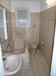 Die vakante, helle 3-Zimmer-Wohnung liegt in einer Ende der 50-iger Jahre errichteten Reiheneinfamilienhaussiedlung. Dieses Haus wurde in ein 2-Parteienhaus umfunktioniert und beherbergt 2 wirklich nette Wohneinheiten. Die gesamte Siedlung macht einen Toppgepflegten Eindruck und beherbergt ein Stück das Flair der Zeit aus der Sie stammt. Der Zuschnitt der Wohnungist als zeitgemäß und gefällig zu bezeichnen (vgl. Grundriss als Anlage). Die Oberböden bestehen im Wesentlichen aus Laminat im Dekor Ahorn (hell). Es gibt einen schönen, trapezförmig geschnittenen Balkon (Mit Markise!), welcher zum Verweilen einlädt. Man erreicht den Balkon sowohl vom Wohnzimmer, als auch von der Küche aus. Genießen Sie den Ausblick auf den äusserst gepflegten Garten und das angrenzende Grün. Die Fenster sind isolierverglast in Kunsstoff weiß ausgeführt. Geheizt wird mittels einer Gaskombitherme (mit integrierter Warmwasseraufbereitung). Diese befindet sich in der Wohnung. Es bleibt völlig Ihnen überlassen, wieviel Sie für Heizkosten aufbringen möchten. Der Energielieferververtrag wird direkt vom Mieter geschlossen. Das gepflegte Wannenbadezimmer in Bahamabeige verfügt über ein Fenster und einen praktischen Handtuchheizkörper. Es steht ein gut 13,5m² großer Kellerraum zur alleinigen Nutzung zur Verfügung. Des Weiteren gibt es je einen Wasch- und Trockenkeller zur gemeinschaftlichen Nutzung. Bitte lesen Sie unbedingt weiter unter Sonstiges hinsichtlich des Mieterprofils.
