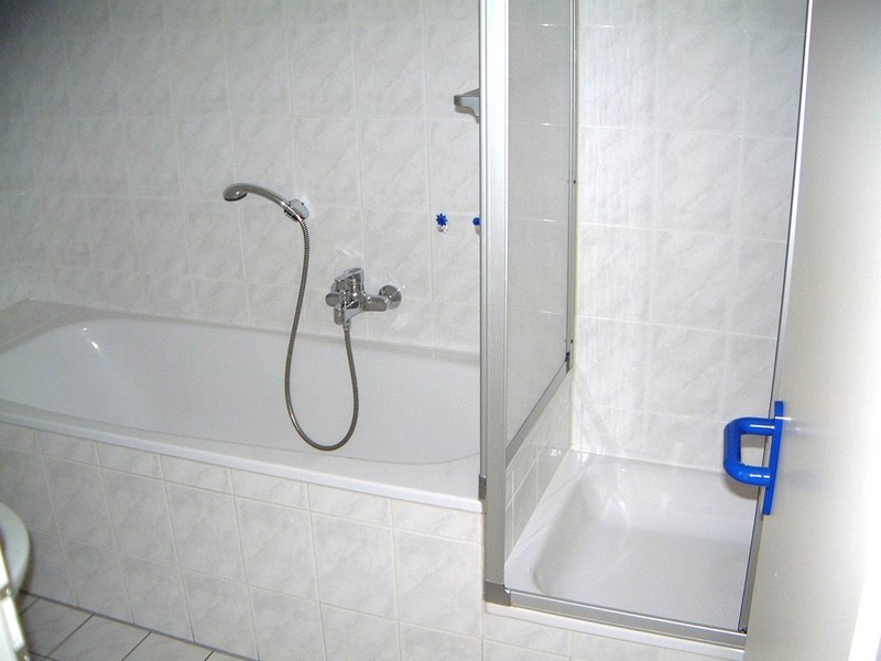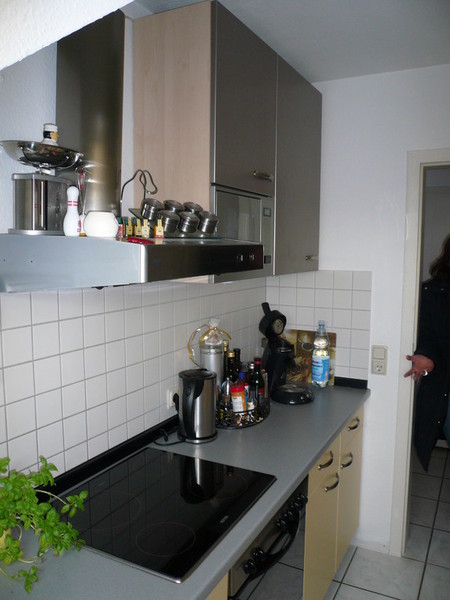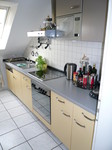 Bei der angebotenen Wohnung handelt es sich um eine neuwertige 3-Zimmer-Dachgeschoss-Wohnung (mit Personenaufzug!). Sie verfügt über einen West-Balkon mit Sonne bis in den späten Abend hinein. Die Oberböden der Wohnung bestehen im gesamten Wohnbereich aus Laminat im Dekor Buche hell. Wände der Nassräume, die Böden des Bades und der Küche bestehen aus hellen keramischen Fliesen. Das Bad verfügt über Wanne und Dusche. Es gibt ein Gäste-WC. Die WC's wurden wandhängend montiert und werden über einen verdeckten Spülkasten gespeist. Die Fenster verfügen zum Teil über Rolläden. Im Keller besteht die Möglichkeit die Waschmaschine aufzustellen. Ein Trockenraum ist ebenfalls vorhanden. Zur Wohnung wird ein Tiefgarenstellplatz zum Preis von €46,00 mtl. angeboten. Das Tor wird mittels Funkfernbedienung geöffnet und ermöglicht es somit trockenen Fußes die Wohnung über den Keller zu erreichen. Im Bereich der Tiefgarage besteht ebenfalls die Möglichkeit Fahrräder abzustellen. Selbstverständlich gehört auch ein separates Kellerabteil zur Wohnung. Die Treppenhausreinigung ist fremd vergeben. Im Bedarfsfall steht ein Hausmeister für kleinere Reparaturen zur Verfügung. Die in der Anlage abgebildete Küche kann vom Vormieter entgeltlich übernommen werden. Sie verfügt über eine Spülmaschine, Herd mit Ceranfeld, Kühlschrank und Microwelle.